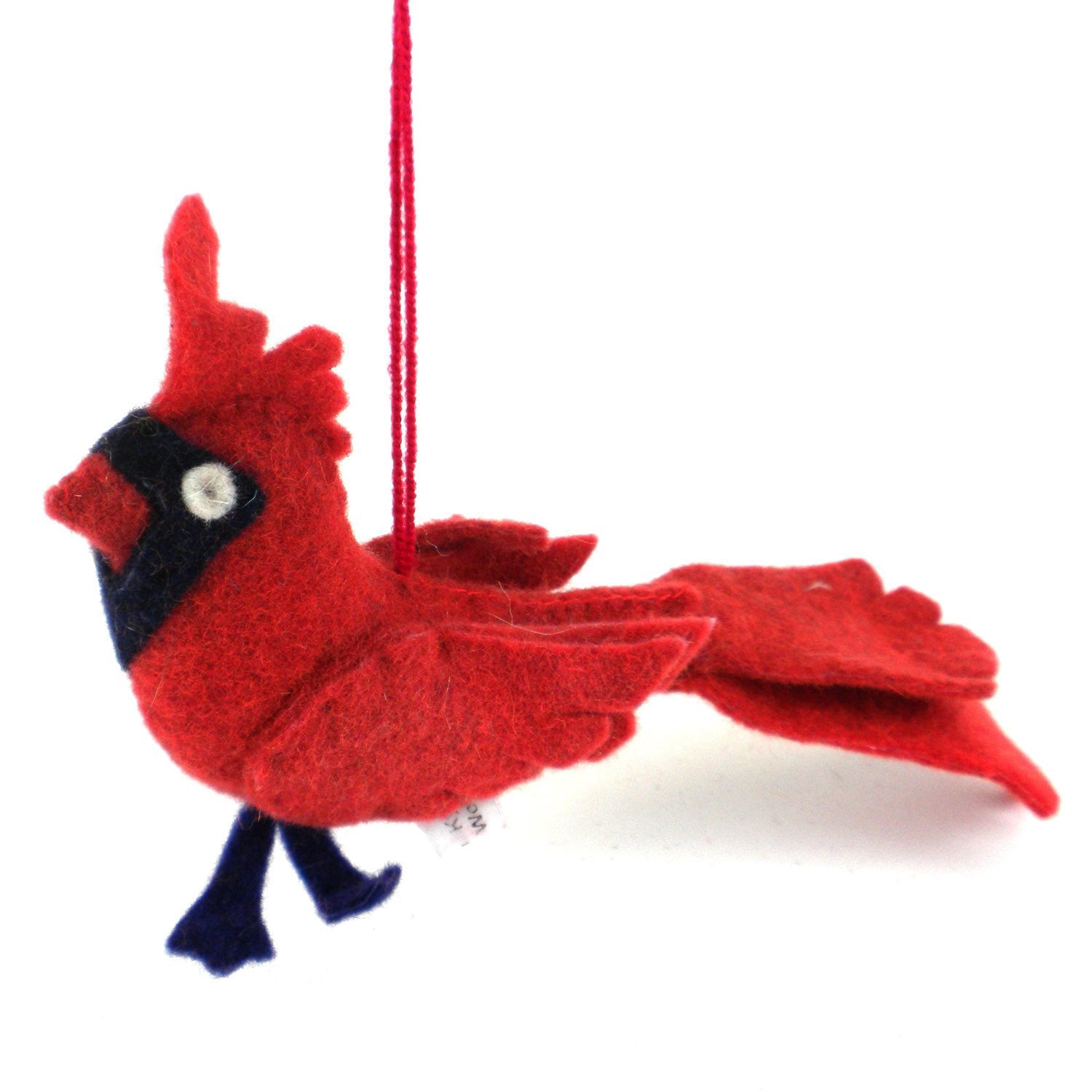 Women in Kyrgyzstan made this ornament by hand from felt. With a loop for hanging the ornament measures 8 inches from tail to beak.