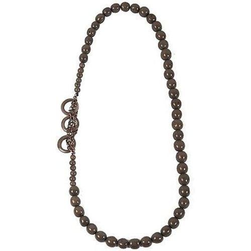 The circle chain necklace includes acai and pambil seeds with tagua nut rings on a metal chain. Handcrafted by artisans it is one of a kind, featuring natural and urban materials combined in an easy-to-wear 36-inch necklace.