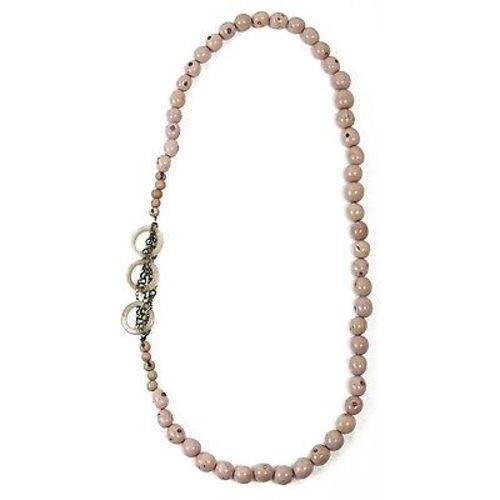 The circle chain necklace includes acai and pambil seeds with tagua nut rings on a metal chain. Handcrafted by artisans it is one of a kind, featuring natural and urban materials combined in an easy-to-wear 36-inch necklace.
