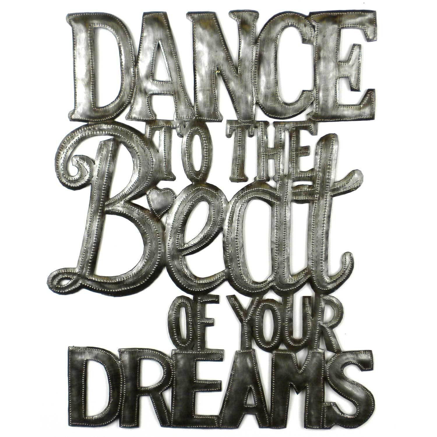Handcrafted from steel oil drums, this piece features an inspirational message. It is 17 * 16 inches. Suitable for indoor or outdoor use.